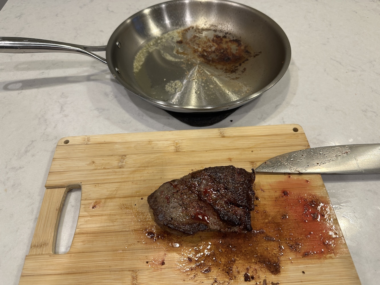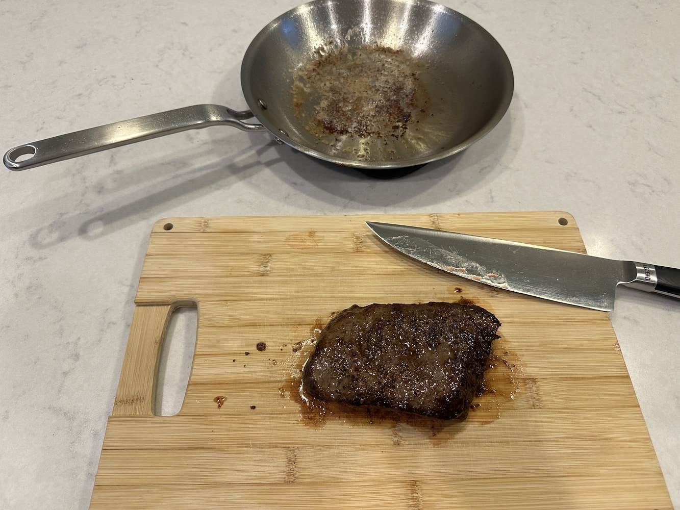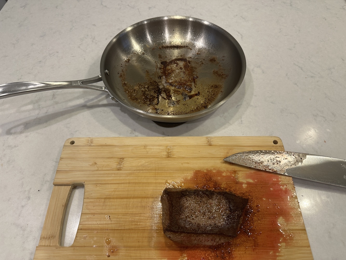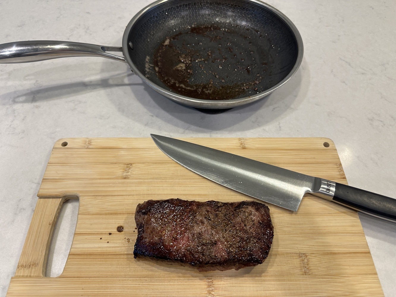 The Steak Test: As expected, the stainless steel performed very well with steak. Perfect, no notes: