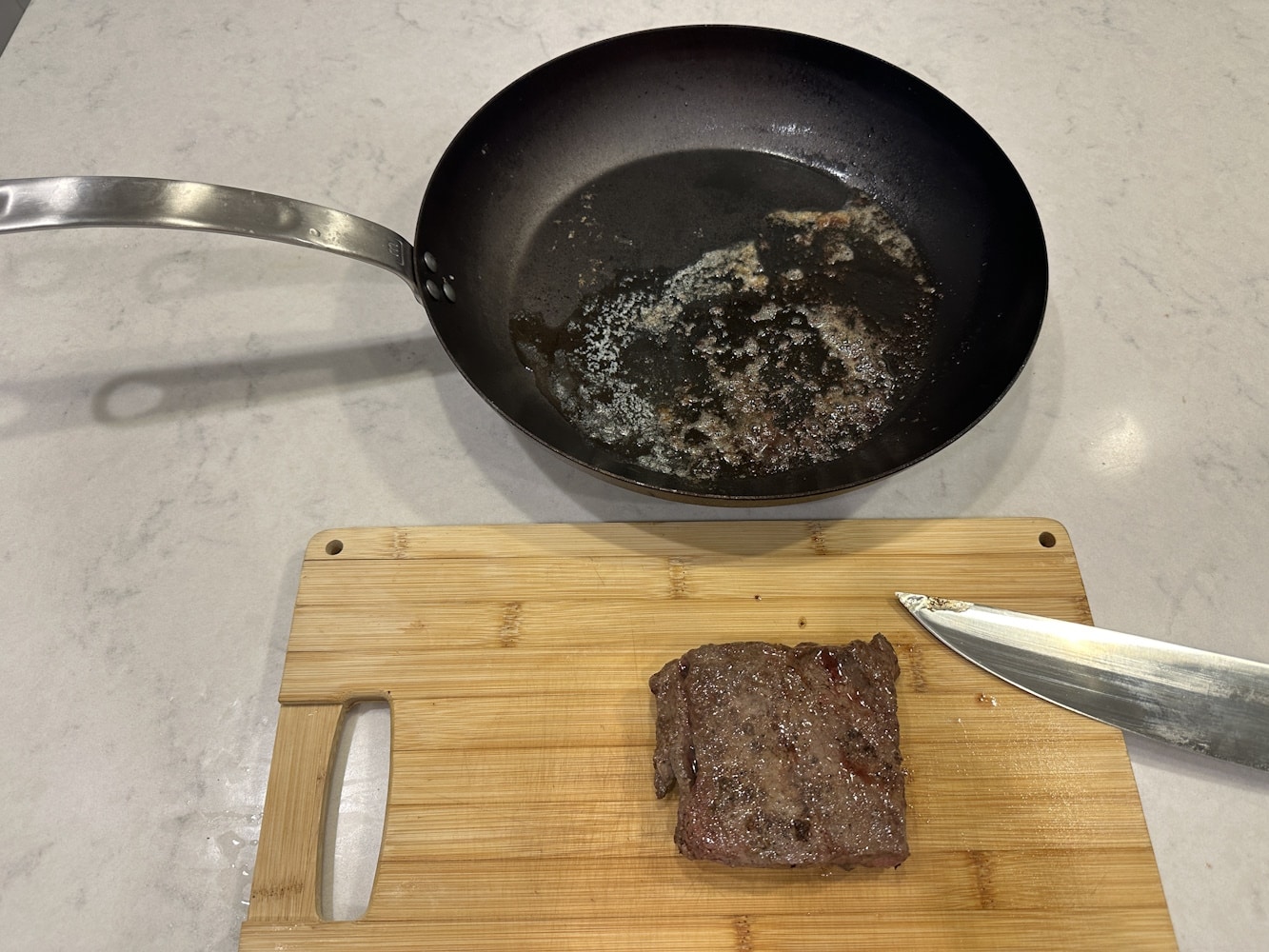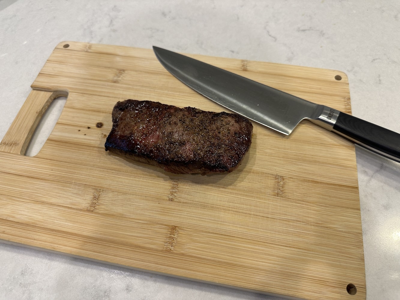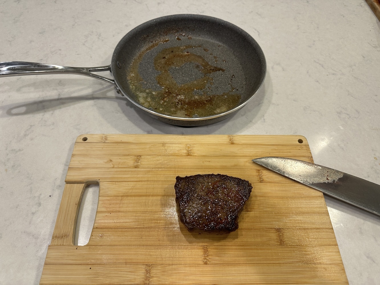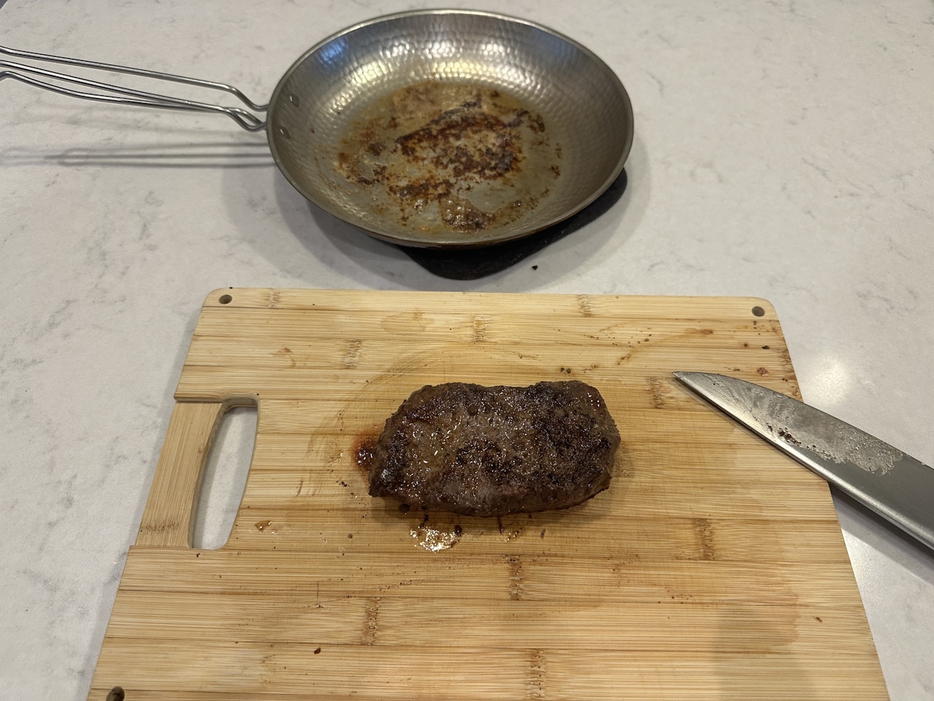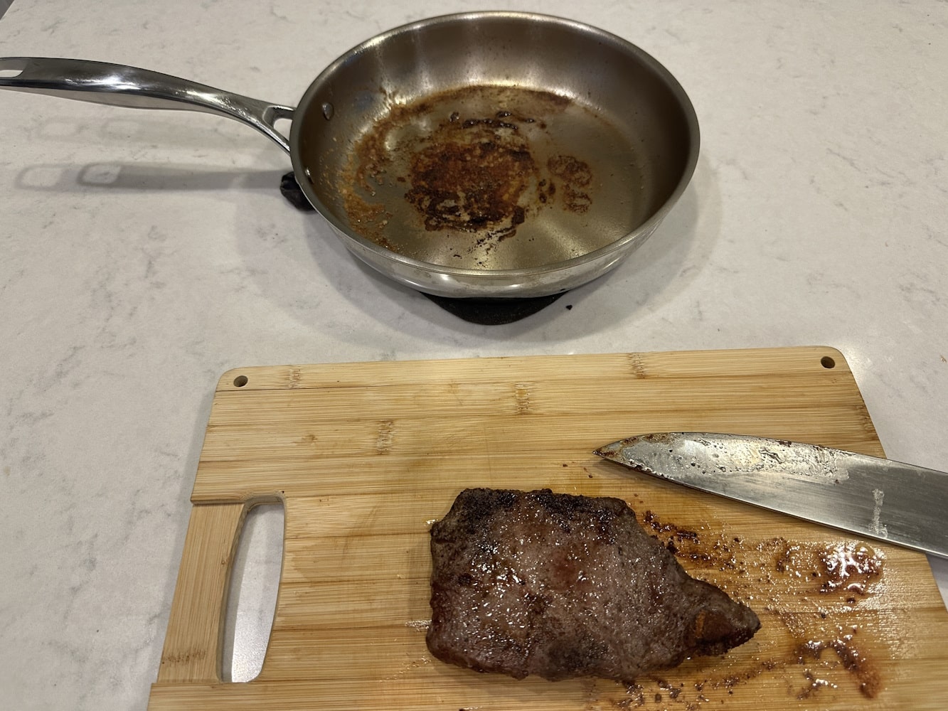 The Steak Test: As expected, the stainless steel performed very well with steak. Perfect, no notes: