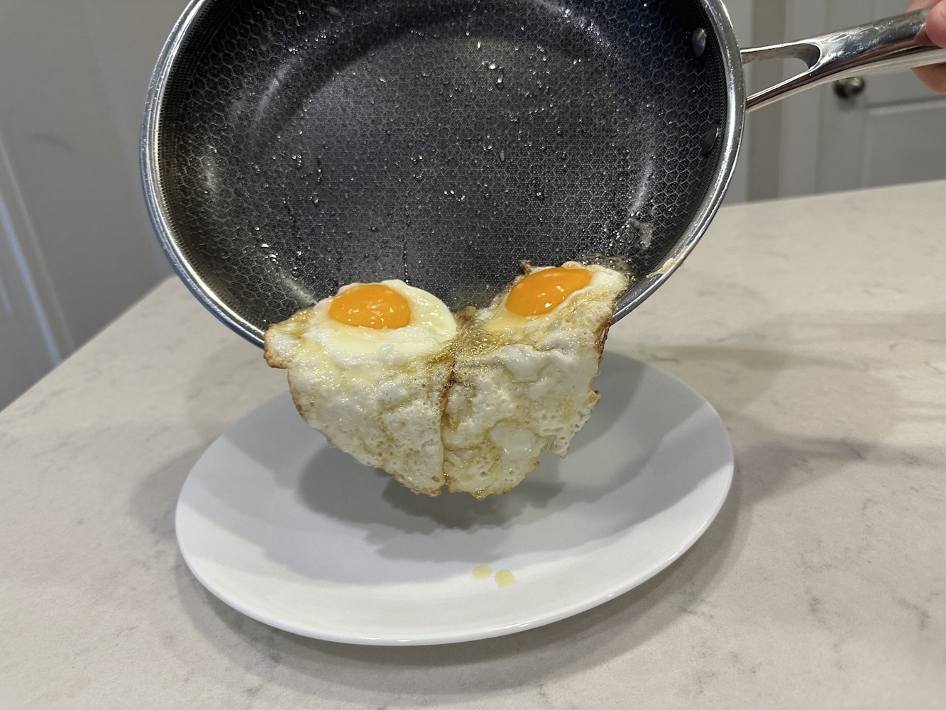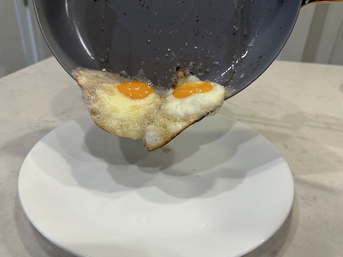 The Egg Test: The eggs were no challenge for the pan’s nonstick coating.
