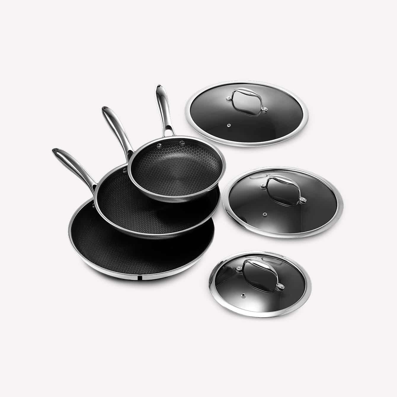 Best Overall: HexClad Hybrid Fry Pan Set With Lids, 6pc