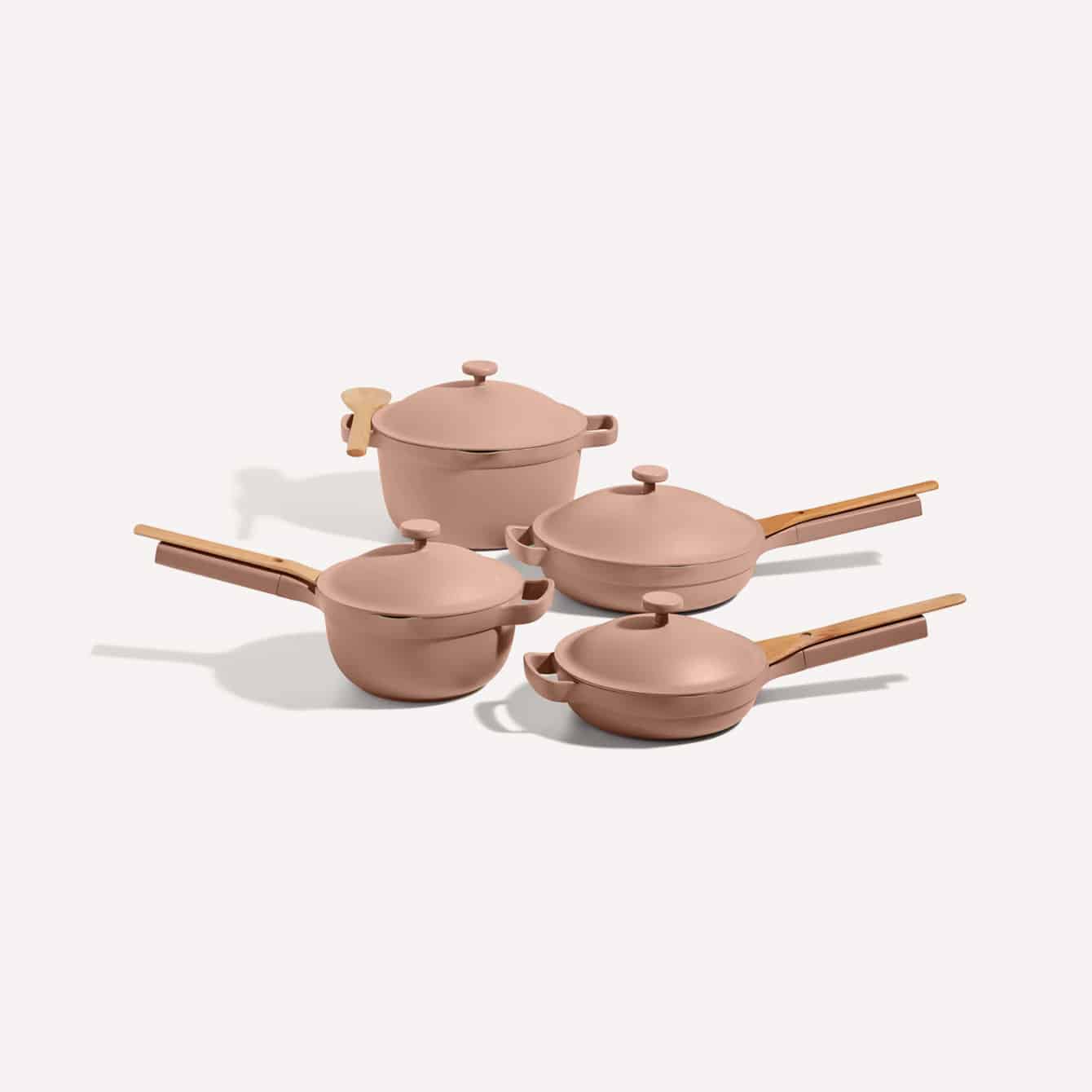 If you have a smaller space or don’t cook as frequently, I’d recommend Our Place’s Always Pan because of how many things it does or a single cast iron pan like Field Company’s. You can’t really go wrong by having one reliable cast iron.