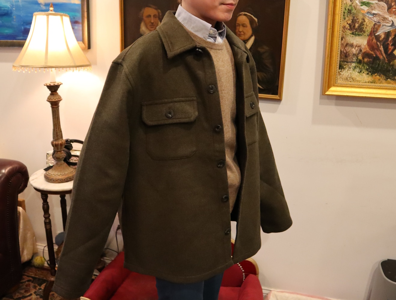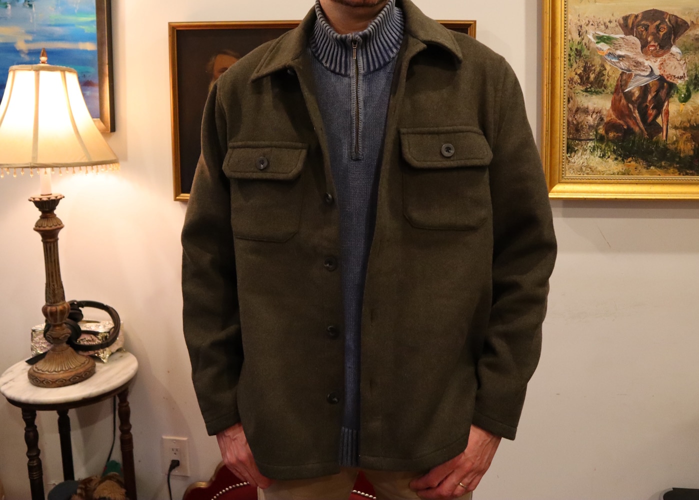 This oversized wool jacket, a traditional shirt jacket design, comes in three colors: black, dark olive, and charcoal, which is what I went for. It has strong lapels, large buttons, and military-esque front pockets. You really can’t go wrong with a classic approach to a shirt jacket, though Mott & Bow leveled it up with detailing.