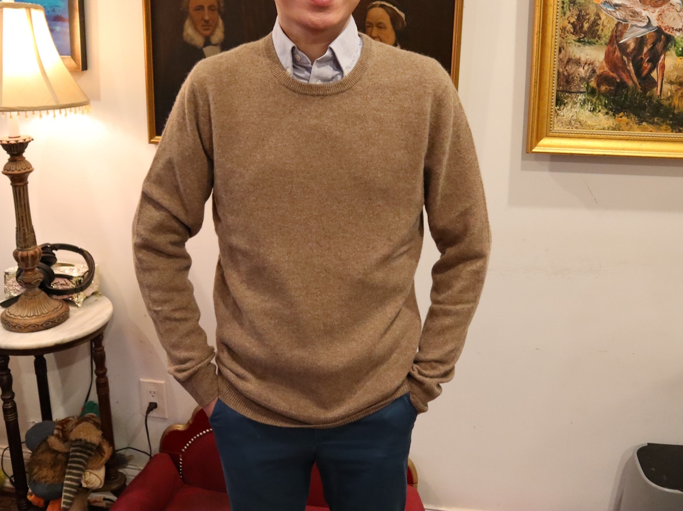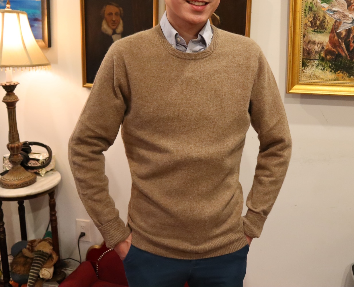 When it comes to the types of sweaters, Mott & Bow really nailed the classic cashmere sweater with this one. It comes in five different colors: black, navy, forest green, charcoal, and camel heather, which is the one I got.