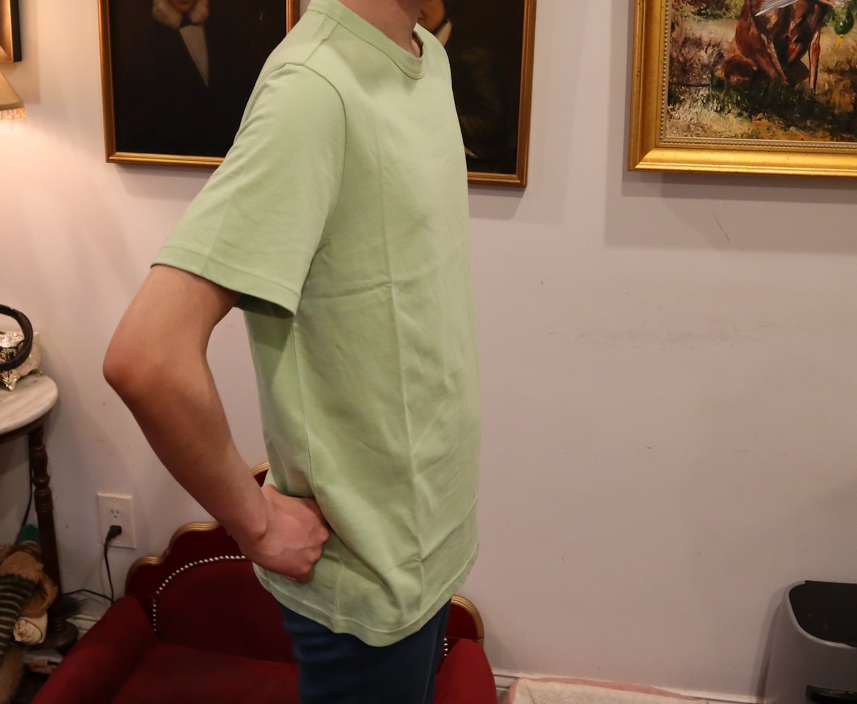 Like the other pieces so far, the Driggs Tee is a classic design — just a normal crewneck, short-sleeved silhouette. However, it comes in a world of colors, including some fun seasonal ones. I ordered a charming green shade called pistachio.