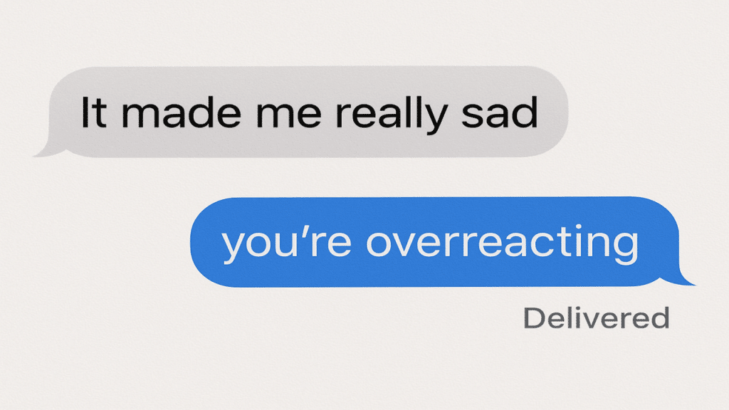 If you opened up your heart and allowed yourself to be vulnerable, only to be dismissed with a “you’re overreacting” or “you’re too sensitive,” that’s emotional invalidation. You don’t need someone to agree with you 100% of the time–but you do deserve to be heard. If your feelings are constantly minimized, it chips away at your confidence and self-worth.